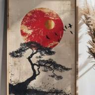 Un tableau d'inspiration asiatique pour notre chambre Avec du rouge qui va avec notre luminaire photo jointe, et j'ai mis des exemple d'inspiration23nov2025